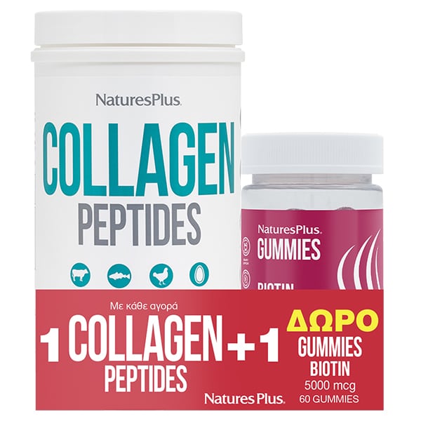 NaturesPlus Promo Collagen Peptides 294gr & Gummies Biotin 5000mcg 60gummies